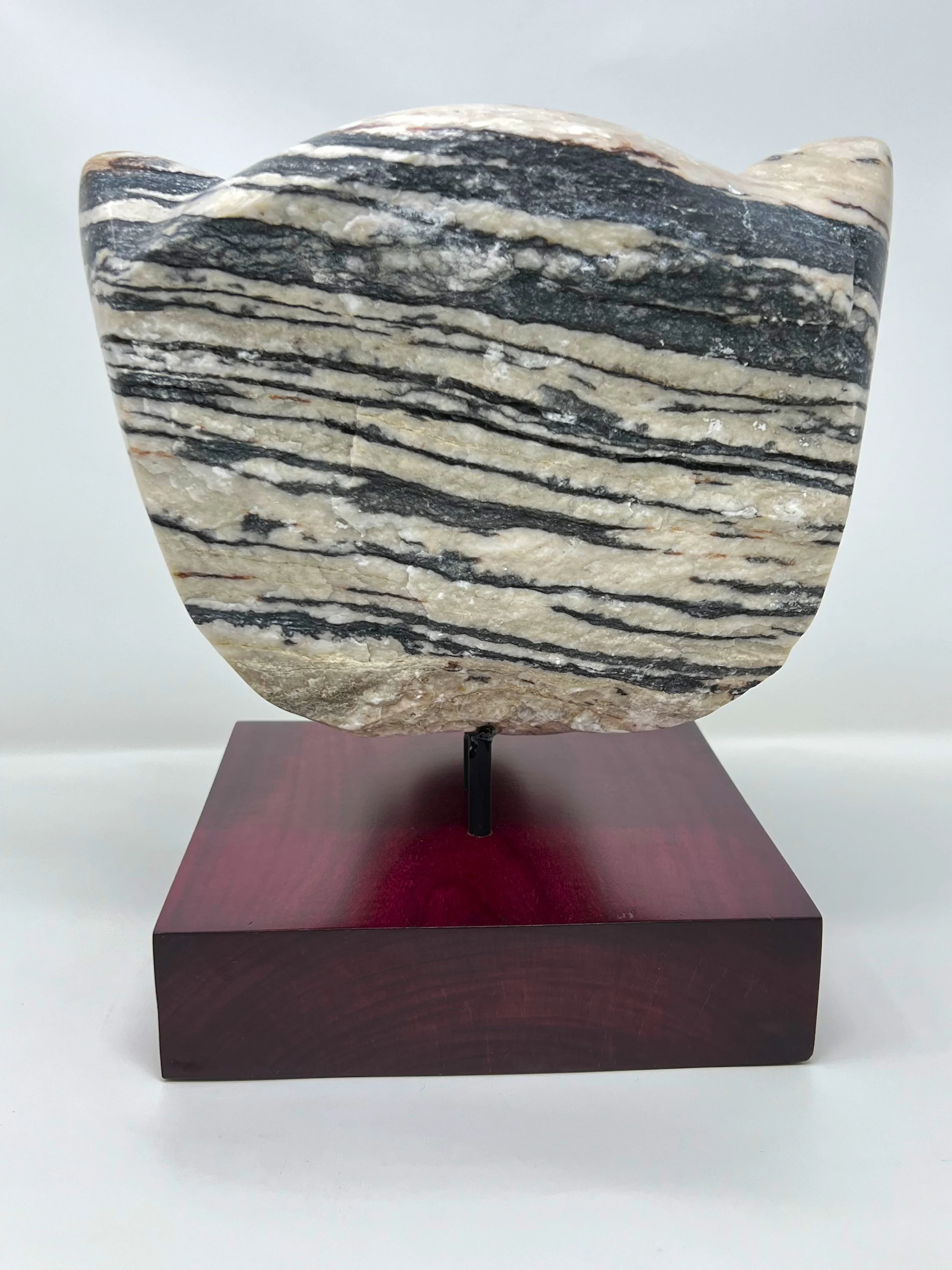 Material: Black/White Anza Borrego Alabaster on a Purpleheart base